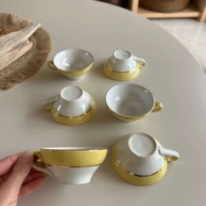 Lot de 6 tasses à café jaunes poussin Badonviller de 1950