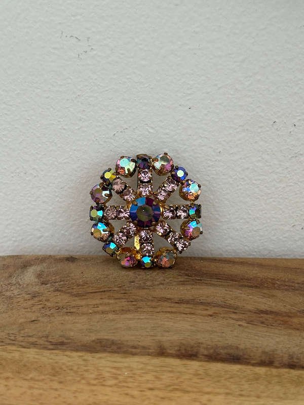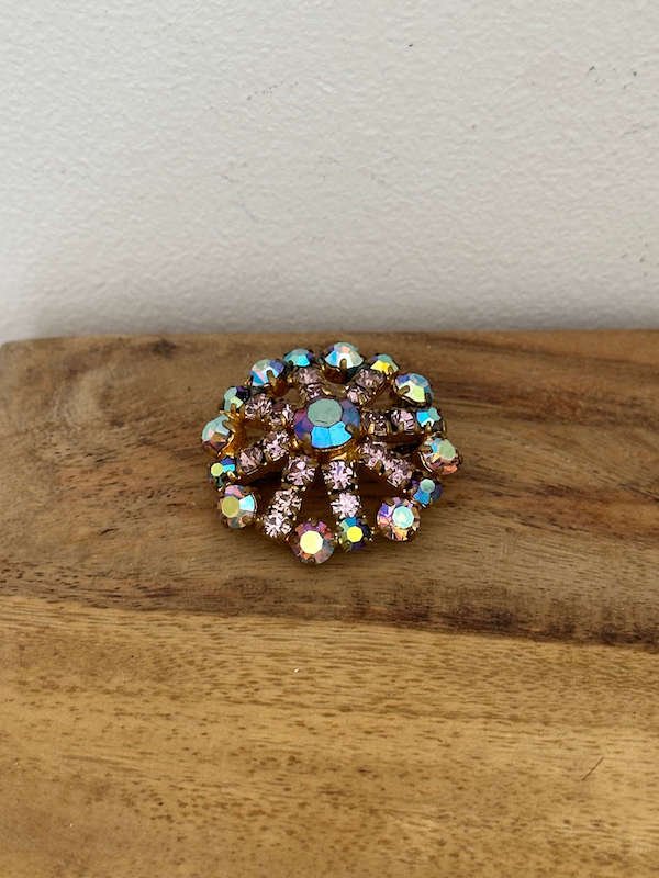 Broche ancienne irisée et dorée