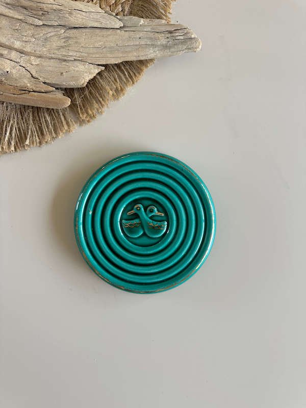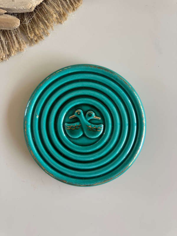 Dessous de plat motif canards Art déco en céramique verte et doré style Verceram