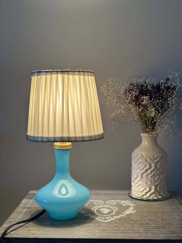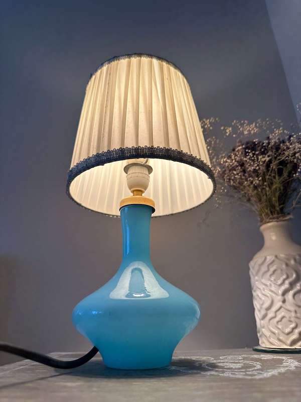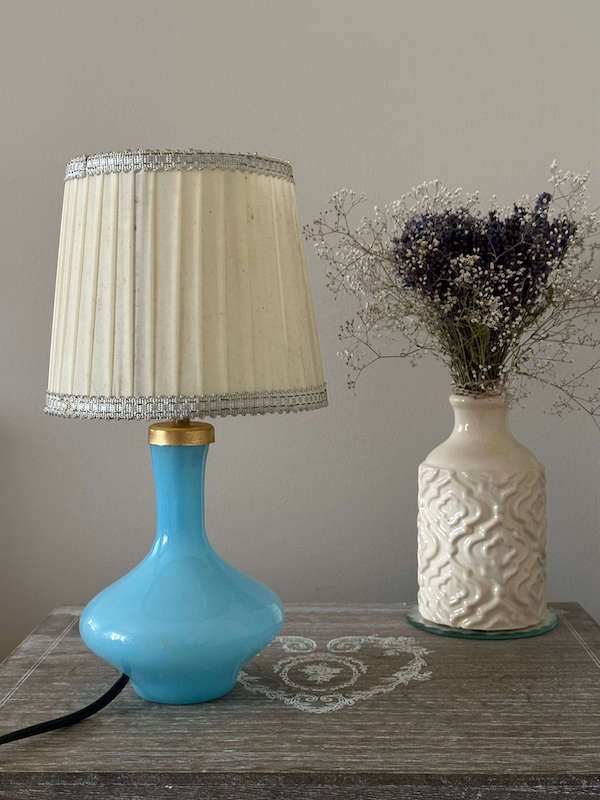 Lampe de chevet vintage en opaline bleue Art Déco