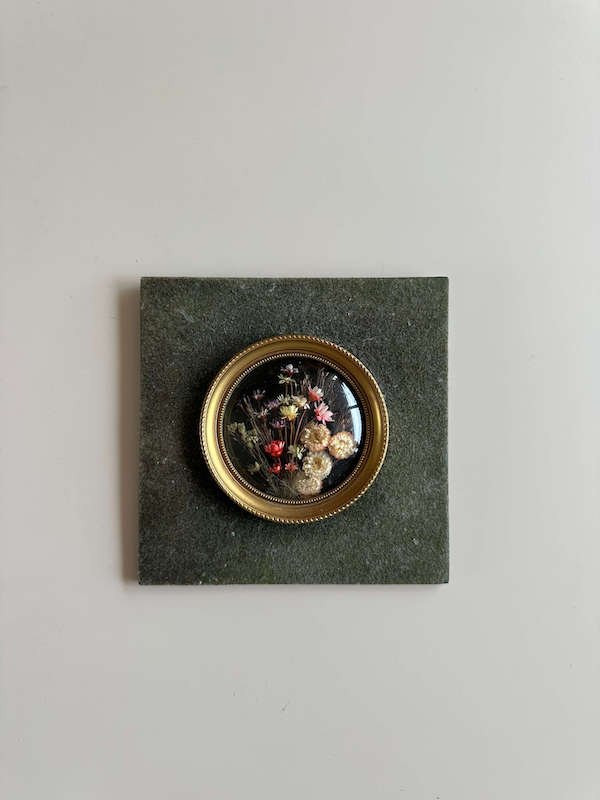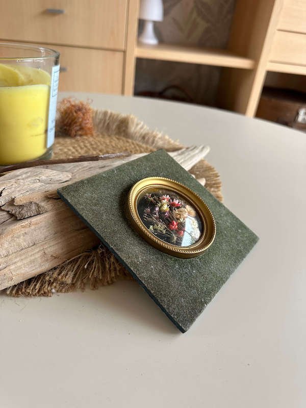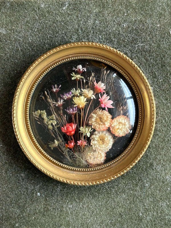 Médaillon ancien doré & fleurs séchées