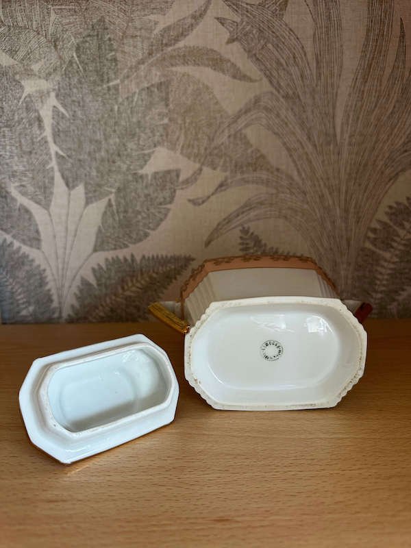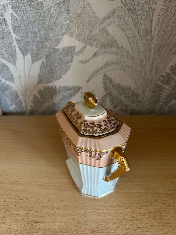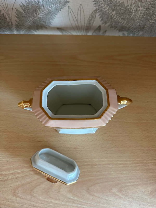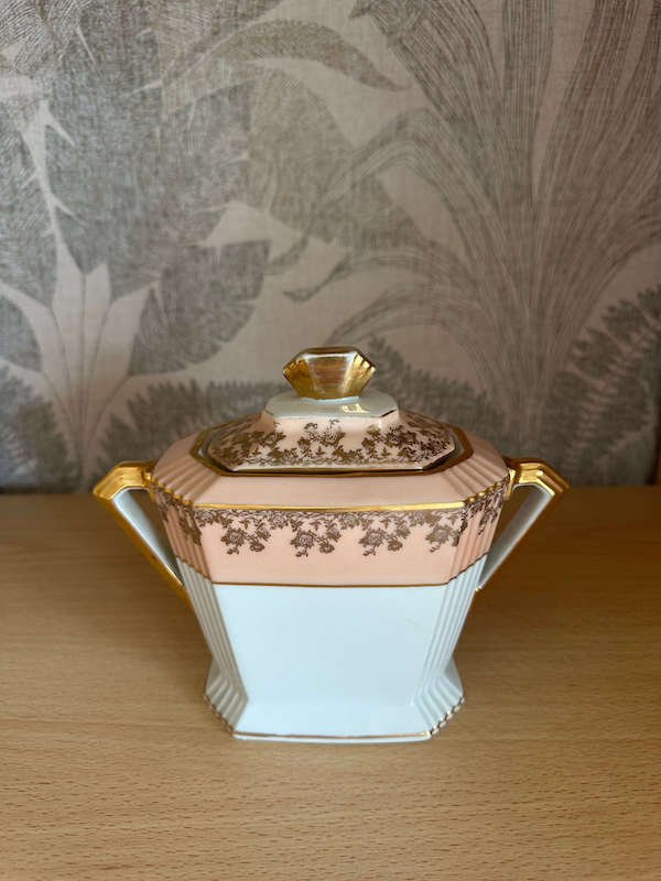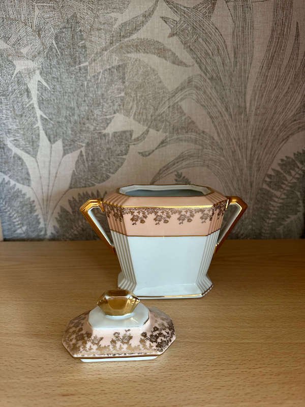 Sucrier ancien rose et doré en porcelaine de Limoges, France